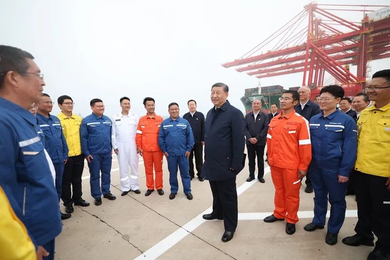22日下午,習近平首先來到日照港考察。日照港是重要的能源和大宗原材料中轉基地,近年來推進智慧化、綠色化建設,建成順岸開放式全自動化集裝箱碼頭。習近平聽取山東省港口發(fā)展建設和日照港規(guī)劃布局等情況介紹,并察看全自動化集裝箱碼頭作業(yè)場景。他說,日照港是改革開放后新建的港口,近年來推進科技創(chuàng)新,將傳統(tǒng)港口改造升級為現(xiàn)代化港口,不僅貨物吞吐量躋身全國前列,還積累了通過傳統(tǒng)產(chǎn)業(yè)改造升級發(fā)展新質生產(chǎn)力的經(jīng)驗,值得肯定。習近平親切慰問港口科技工作者、運營人員、航運人員,希望大家再接再厲、繼續(xù)奮斗,推動日照港管理運營更上一層樓。