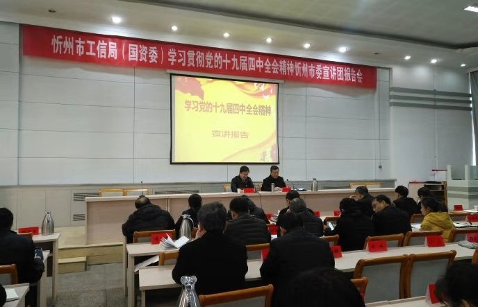 2019年11月26日上午,忻州市工信局(國(guó)資委)學(xué)習(xí)貫徹黨的十九屆四中全會(huì)精神忻州市委宣講團(tuán)報(bào)告會(huì)在忻州市委黨校召開。市統(tǒng)戰(zhàn)部常務(wù)副部長(zhǎng)鄭慧明同志在報(bào)告會(huì)上作宣講,市工信局黨委書記、局長(zhǎng)吳瑞峰主持會(huì)議,工信局黨員干部、各監(jiān)管企業(yè)班子成員共180余人到會(huì)。公司黨委副書記陳志平、黨委委員趙培宏、王明生、邢春生等領(lǐng)導(dǎo)班子成員及相關(guān)人員參加。