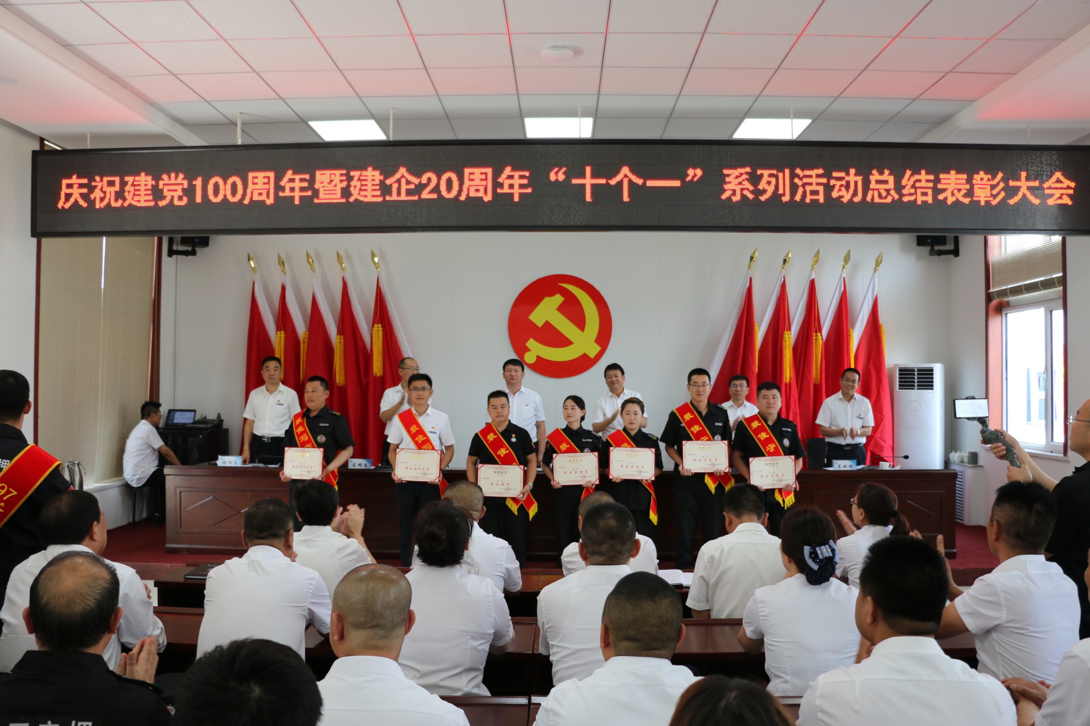 集團公司黨委委員邢春生同志宣讀了《關于表彰集團公司慶祝建黨100周年暨建企20周年“十個一”系列活動獲獎集體、獲獎個人的決定》;黨委委員、副總經(jīng)理王明生同志向大會通報了今年上半年受到上級表彰的先進集體和個人。