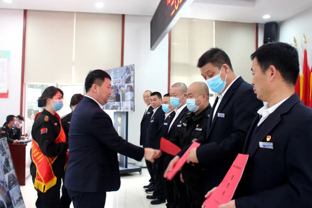 楊德華指出,過去的一年,大正集團各項工作取得了比較好的成績,作為協(xié)助公安機關(guān)維護社會治安穩(wěn)定的重要輔助力量,大正保安集團在服務(wù)治安防范工作、常態(tài)化疫情防控和搶險救災(zāi)、大型活動安保等工作中作出了重要貢獻。隨后從進一步深化思想認識、進一步提升服務(wù)水平、進一步強化隊伍建設(shè)幾方面對今后的工作提出具體要求。鼓勵大家繼續(xù)發(fā)揚艱苦奮斗的工作作風(fēng),緊密圍繞黨委政府中心任務(wù)開展工作,以協(xié)助公安機關(guān)做好黨的二十大期間社會穩(wěn)定為主線,團結(jié)一心,奮力拼搏,以飽滿的熱情、昂揚的斗志,續(xù)寫我市保安行業(yè)發(fā)展的新篇章,為全市治安社會大局持續(xù)穩(wěn)定做出新的更大貢獻。