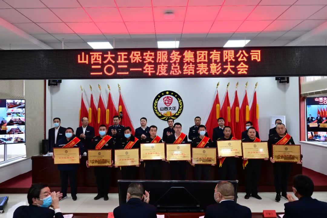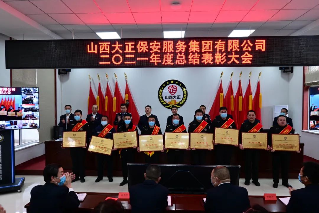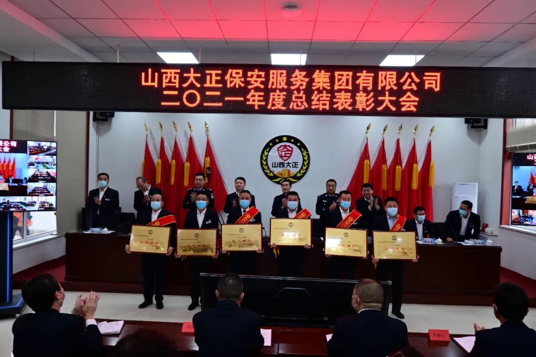 王明生宣讀《山西大正保安服務(wù)集團有限公司二0ニ一年度“雙先”評比表彰決定》。隨后進行了頒獎儀式。對受表彰的2021年度先進單位、先進集體、安全標(biāo)兵團隊、新聞報道先進單位、先進班(車、庫)組、優(yōu)秀管理者、先進個人頒發(fā)獎牌獎狀證書。