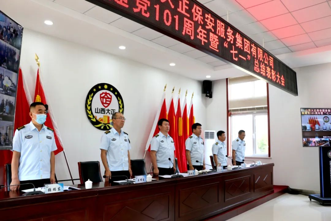 2022年6月30日上午,山西大正保安服務(wù)集團(tuán)有限公司召開慶祝建黨101周年暨“七一”總結(jié)表彰視頻會議,總結(jié)公司一年來黨建及其它各項(xiàng)工作,安排部署下一階段黨建及其它各項(xiàng)工作,表彰一批先進(jìn)基層黨組織、優(yōu)秀黨務(wù)工作者、優(yōu)秀共產(chǎn)黨員和黨風(fēng)廉潔先進(jìn)個人。動員公司各級黨組織和廣大黨員干部職工進(jìn)一步統(tǒng)一意志、開拓創(chuàng)新、拼搏奉獻(xiàn)、扎實(shí)工作,推動公司持續(xù)健康、快速發(fā)展,增強(qiáng)黨組織的創(chuàng)新力、凝聚力和戰(zhàn)斗力,推動公司各項(xiàng)事業(yè)取得新成績、再上新臺階。