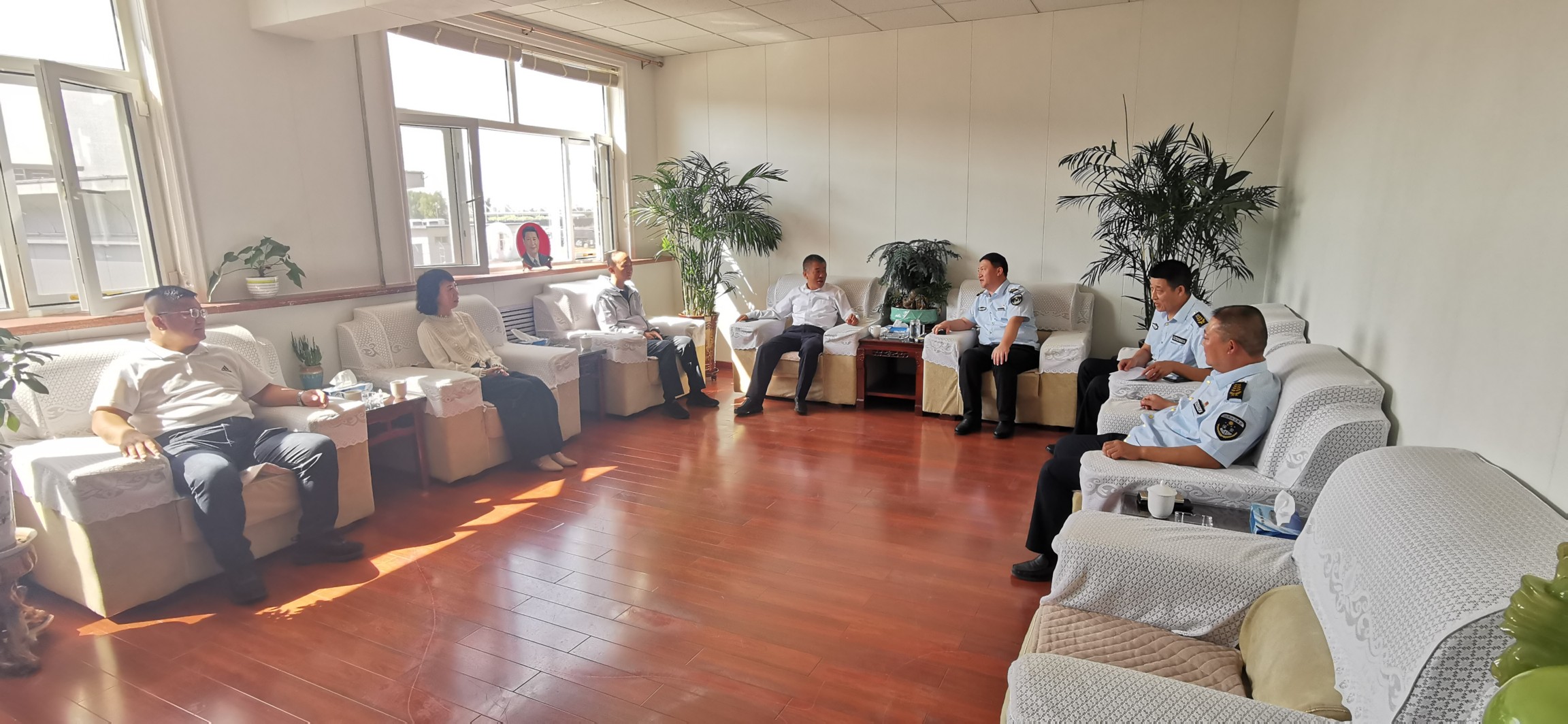 集團公司總經理助理蔡車峰,保安人防公司經理閆文靜等相關負責人參加本次洽談。