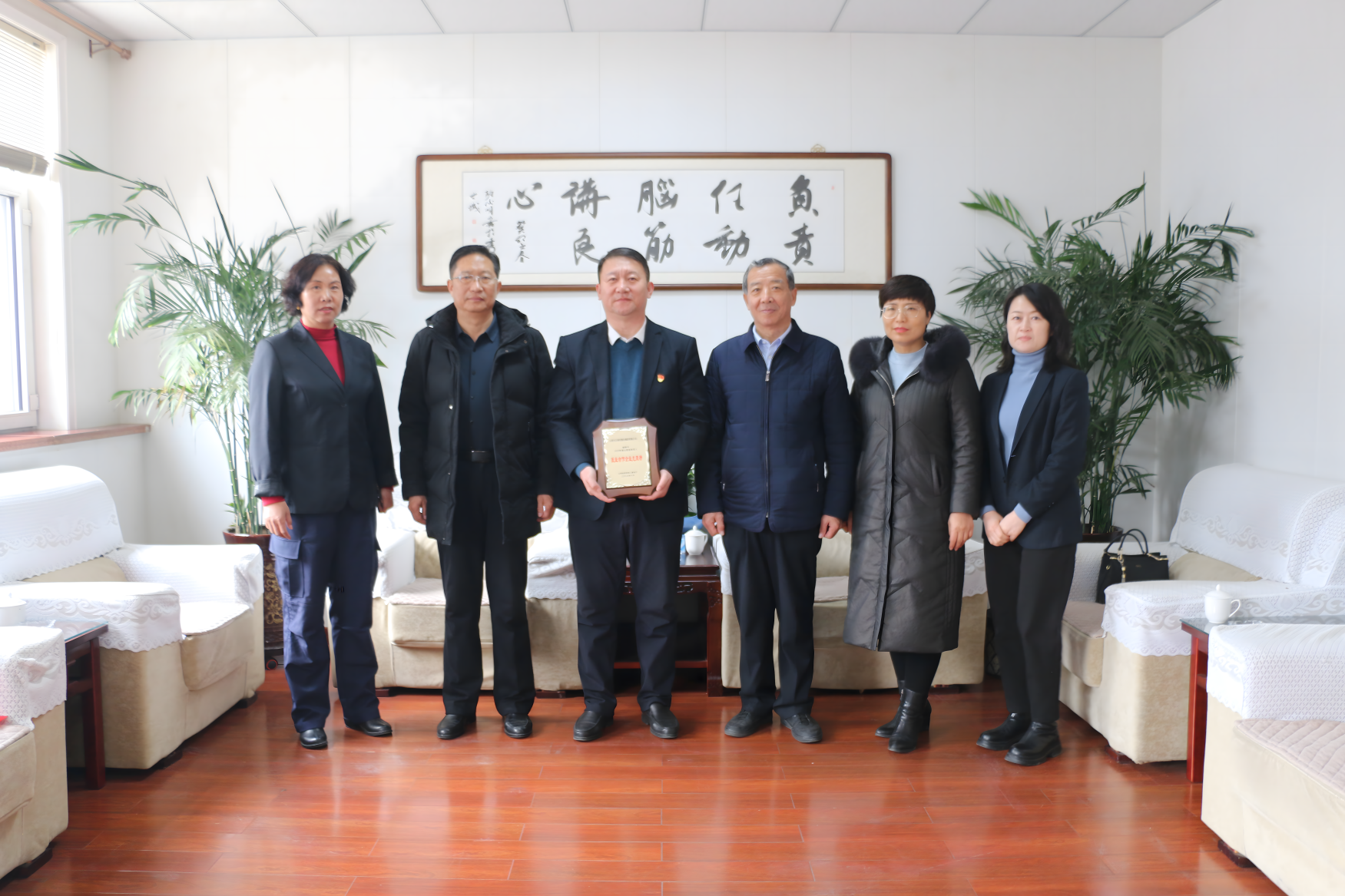 1月30日,受忻州市退役軍人事務局黨組書記、局長張耀民委托,忻州市退役軍人事務局黨組成員、副局長張培觀、四級調(diào)研員王樹康、三科科長張承香蒞臨公司,為集團公司送上由山西省退役軍人事務廳頒發(fā)的“2023年度山西退役軍人就業(yè)合作企業(yè)光榮榜”獎牌。