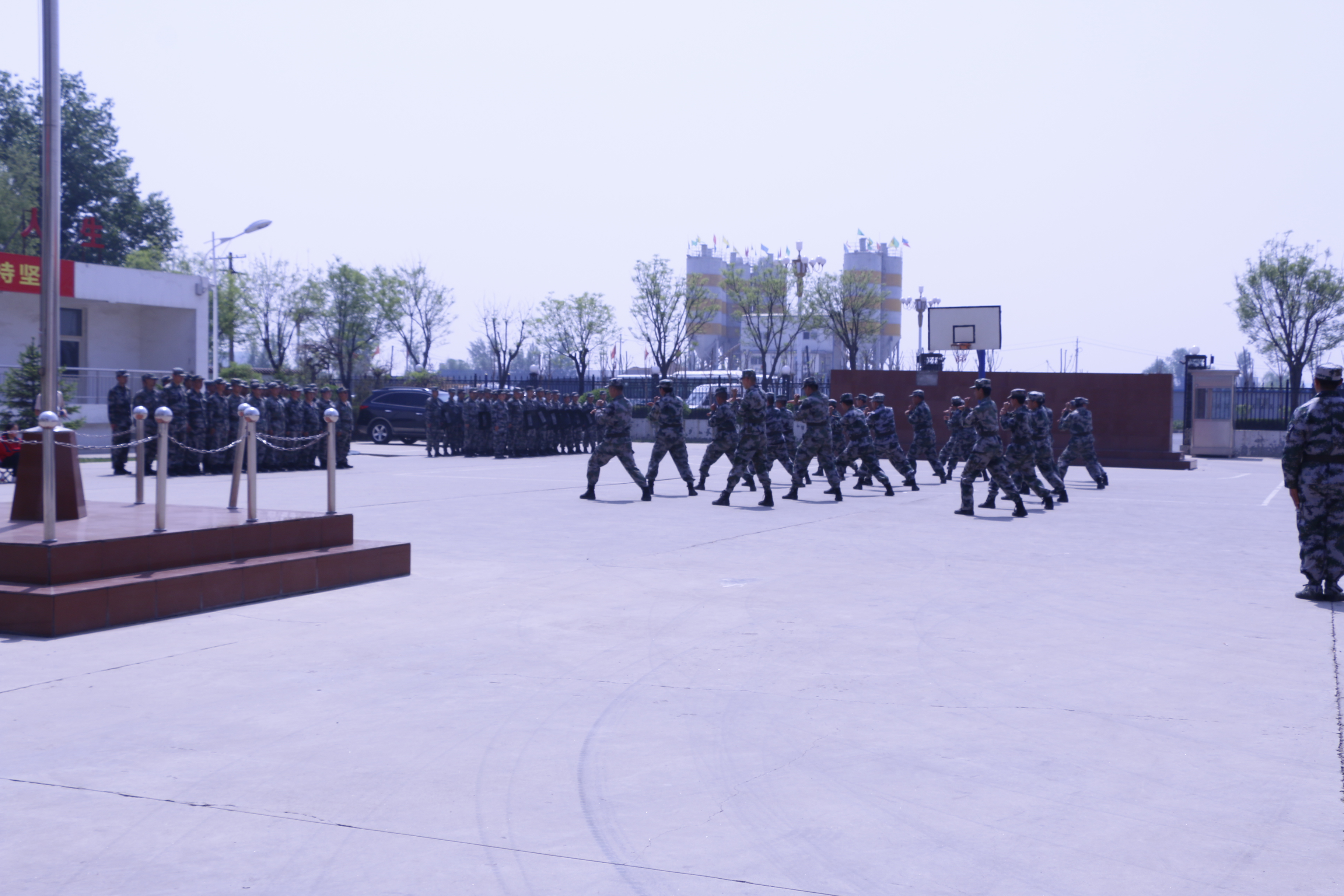 宣誓儀式結(jié)束后,全體與會領(lǐng)導(dǎo)和應(yīng)急連隊員赴盧野和大正保安服務(wù)有限公司參觀了民兵應(yīng)急連基礎(chǔ)設(shè)施建設(shè)和應(yīng)急物資裝備庫。10時許,全體人員回到忻府區(qū)人武部參加“忻府區(qū)2018年度民兵整組驗收觀摩會議”,與會領(lǐng)導(dǎo)首先觀看了民兵應(yīng)急搶險救災(zāi)裝備和通信裝備展示,而后觀摩了防爆隊形、軍體操、盾棍術(shù)等科目的會操演練。甴大正保安服務(wù)有限公司組成的民兵應(yīng)急連隊員們整齊肅穆、英姿颯爽,全身心投入到演練當(dāng)中,以高標(biāo)準(zhǔn)的要求順利完成了上級領(lǐng)導(dǎo)檢驗任務(wù),受到了與會領(lǐng)導(dǎo)充分肯定與陣陣掌聲。最后,忻府區(qū)區(qū)委書記張鈺祥、軍分區(qū)副司令員李領(lǐng)國,分別作了重要講話,會議甴忻府區(qū)人武部政委劉啟國主持,會議在熱烈的氣氛中圓滿結(jié)束。