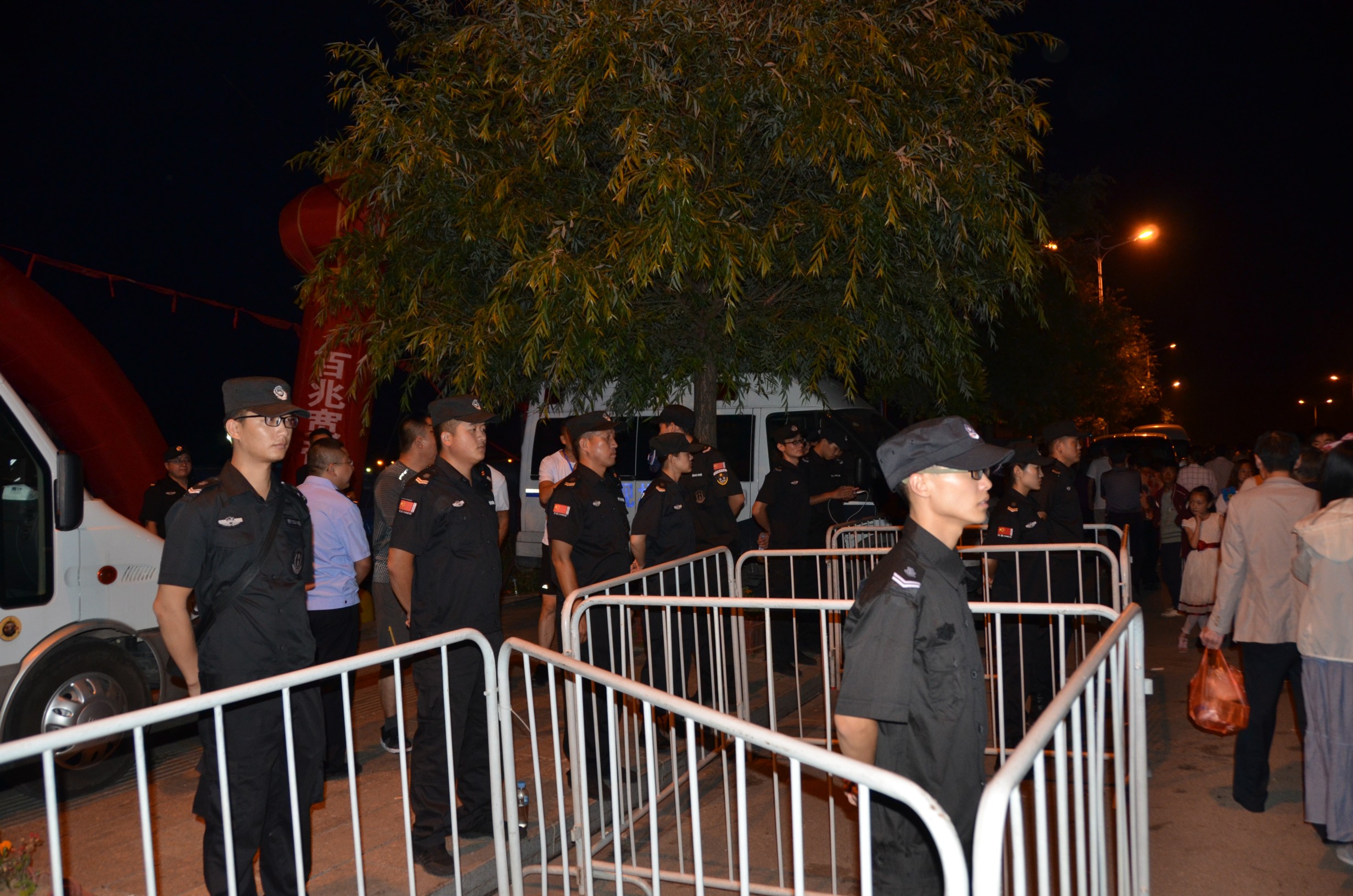 執(zhí)勤期間,黨委書記、董事長張躍生親臨現(xiàn)場(chǎng),全程參與,統(tǒng)籌調(diào)度指揮執(zhí)勤工作,其他公司領(lǐng)導(dǎo)靠前指揮,分區(qū)負(fù)責(zé)現(xiàn)場(chǎng)執(zhí)勤工作,極大地鼓舞了全體執(zhí)勤隊(duì)員的士氣。在押運(yùn)、特勤、技防、機(jī)動(dòng)及機(jī)關(guān)抽調(diào)的300余名精干隊(duì)員的共同努力下,圓滿地完成了本次音樂節(jié)執(zhí)勤任務(wù)。