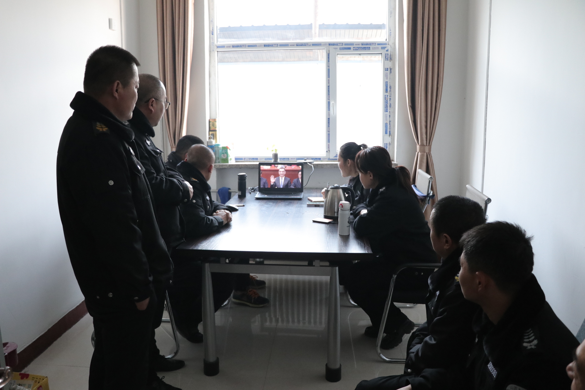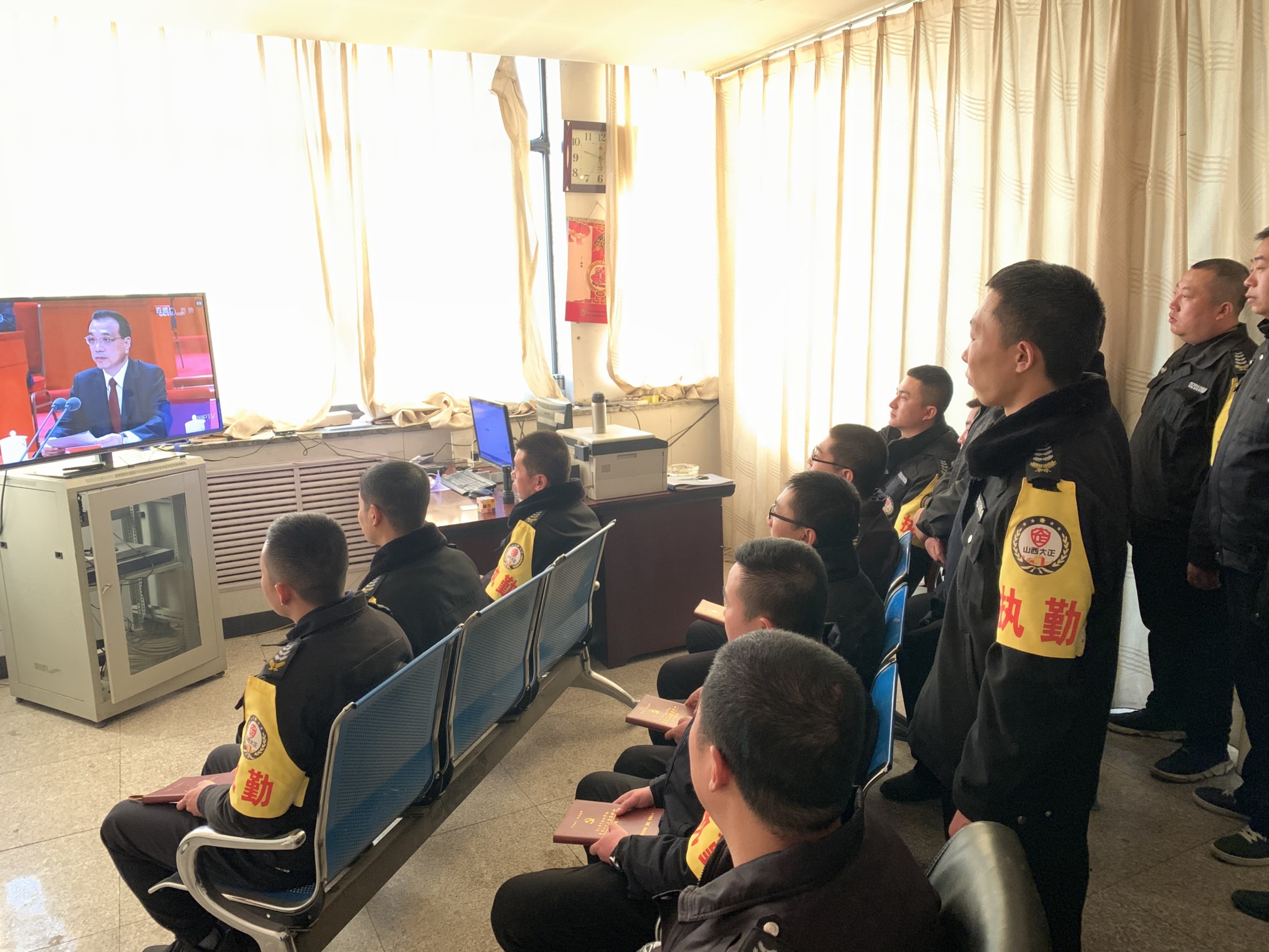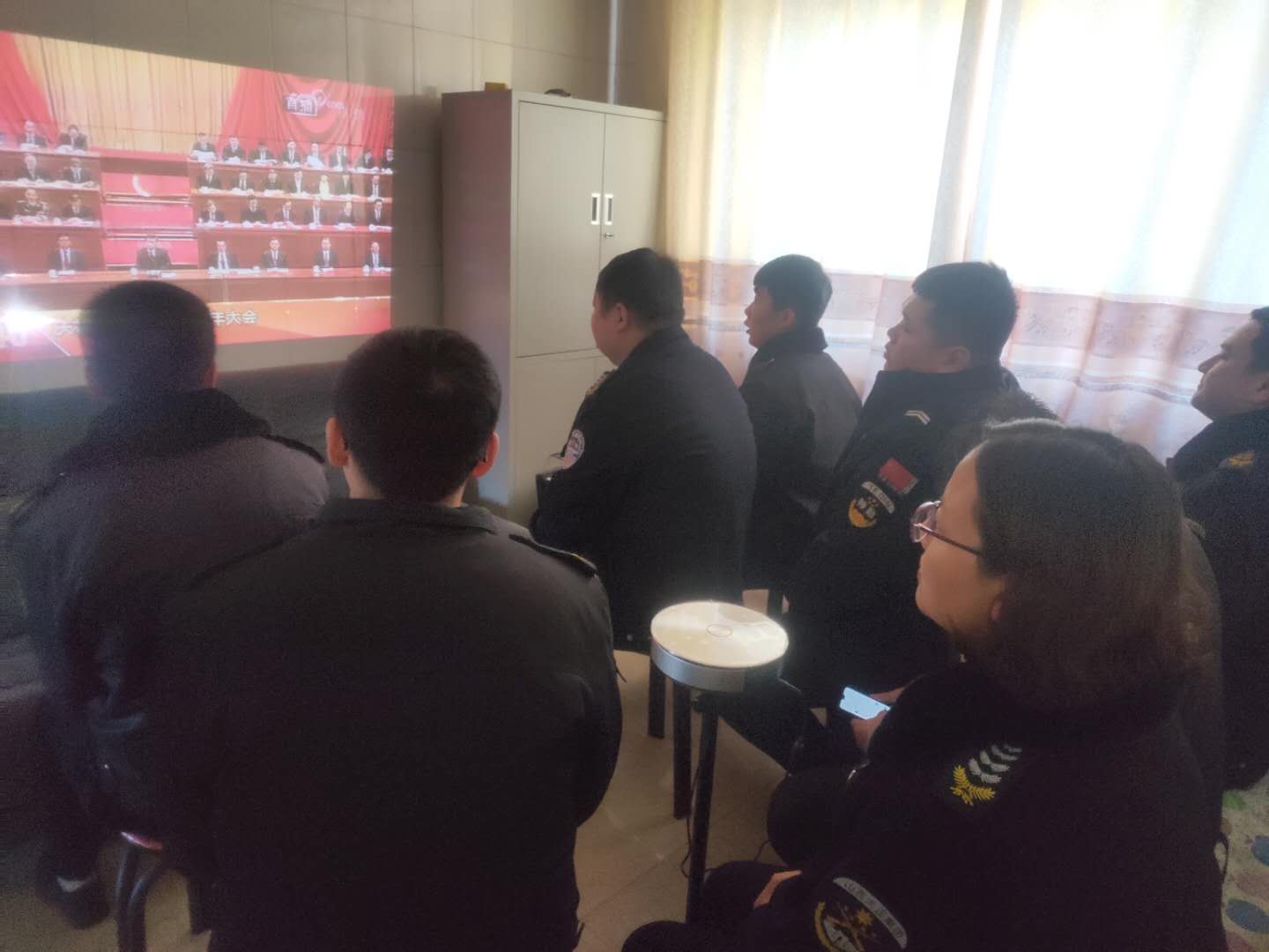 (守押靜樂中隊(duì)組織收聽、收看大會(huì))