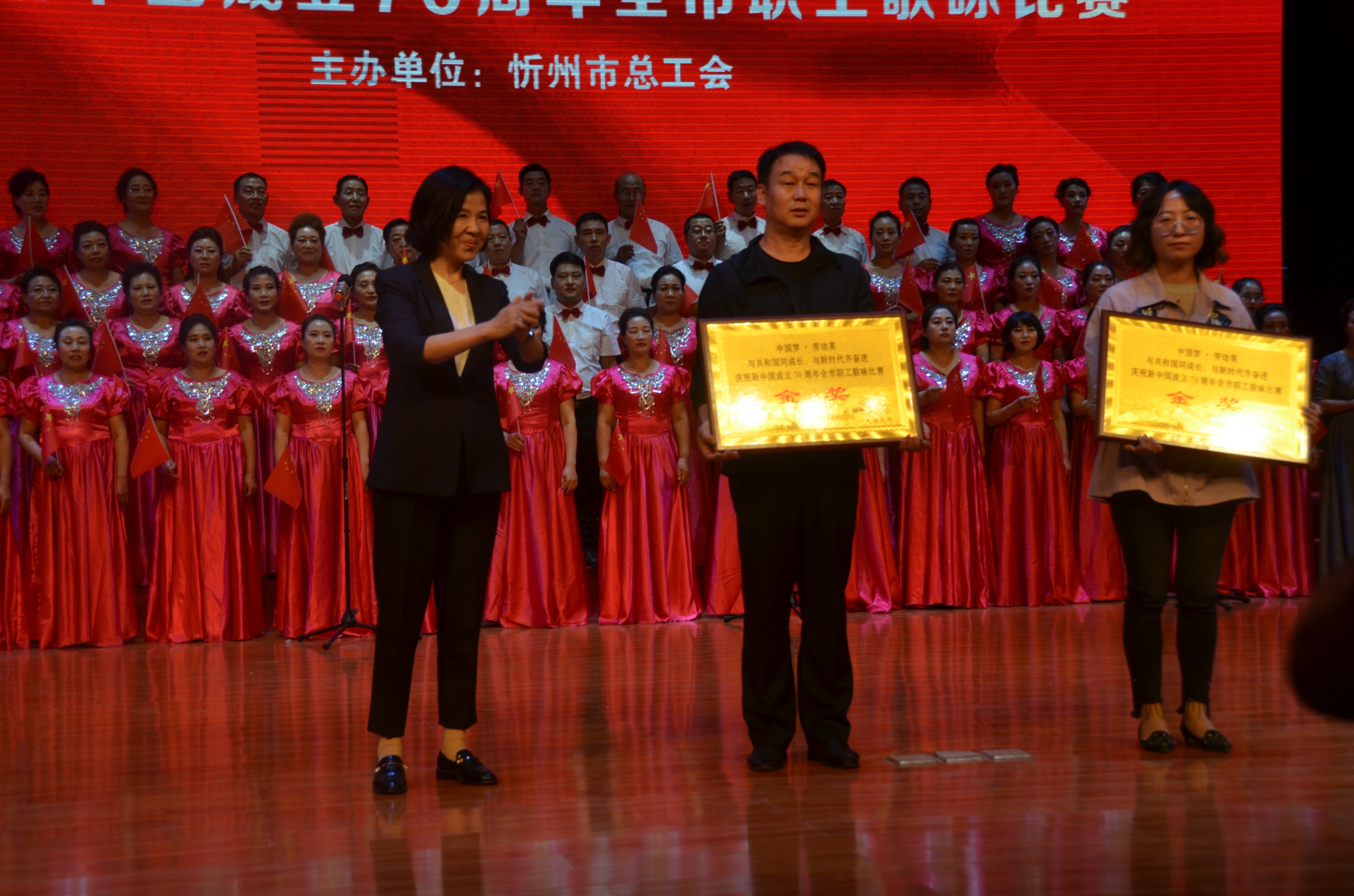 9月19日下午,由忻州市總工會舉辦的以“中國夢·勞動美”與共和國同成長 與新時代齊奮進(jìn)為主題的慶祝中華人民共和國成立70周年全市職工歌詠比賽在忻州市職業(yè)技術(shù)學(xué)院正式拉開帷幕。我公司組隊參加并喜獲金獎。公司黨委書記、董事長張躍生,黨委副書記、副總經(jīng)理陳志平,黨委委員、副總經(jīng)理趙培宏現(xiàn)場觀賽為參賽隊員加油鼓勁。