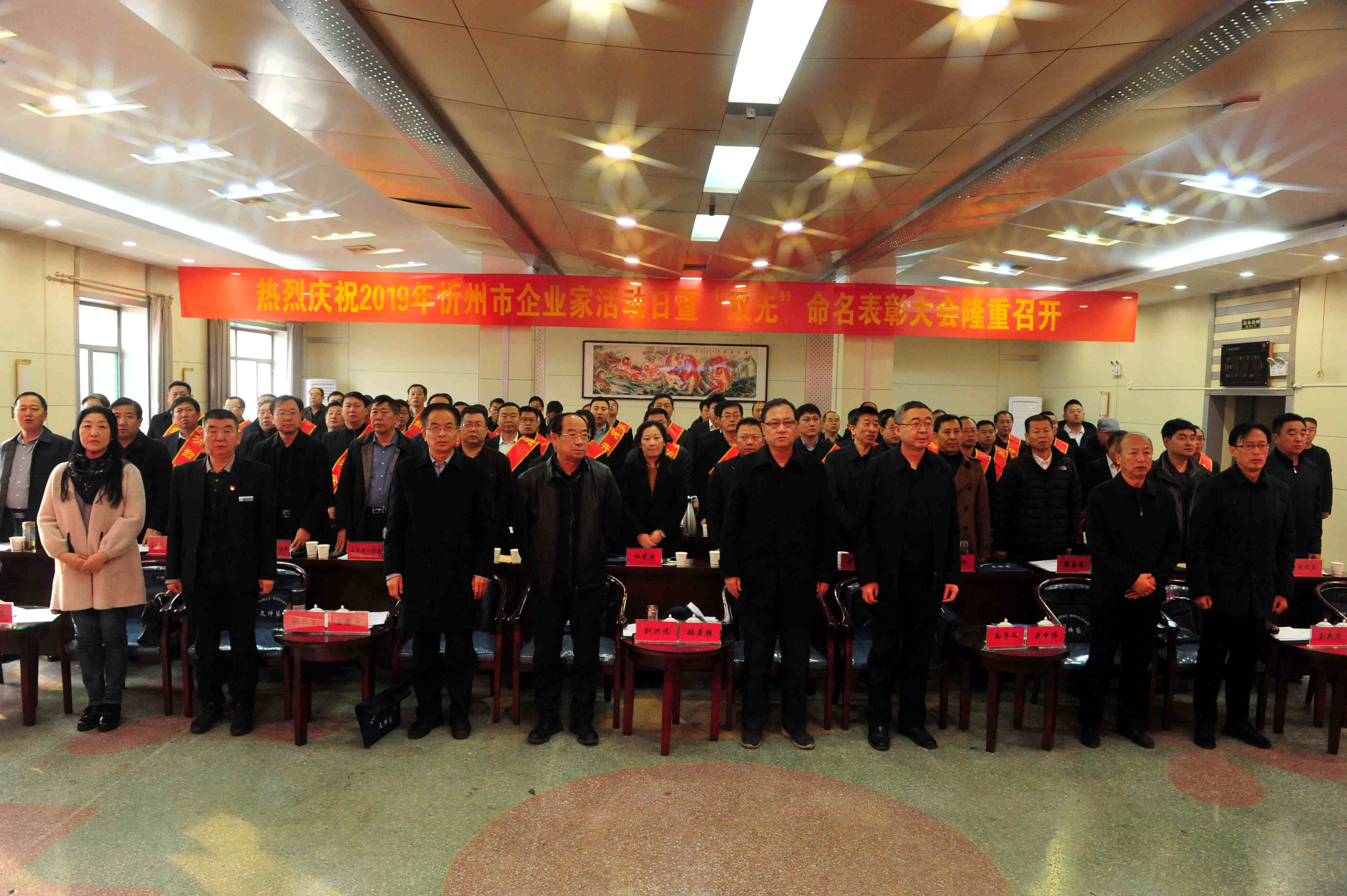 2019年11月23日,由忻州市企業(yè)聯(lián)合會、忻州市企業(yè)家協(xié)會(簡稱“忻州企聯(lián)”)主辦,山西大正保安服務(wù)有限公司承辦的2019年忻州市企業(yè)家活動日暨“雙先”命名表彰大會在銀座會議中心召開。公司榮獲“2018年度忻州市功勛企業(yè)”,山西企聯(lián)副會長、忻州企聯(lián)常務(wù)副會長、公司黨委書記、董事長張躍生榮獲“2018年度忻州市功勛企業(yè)家”。