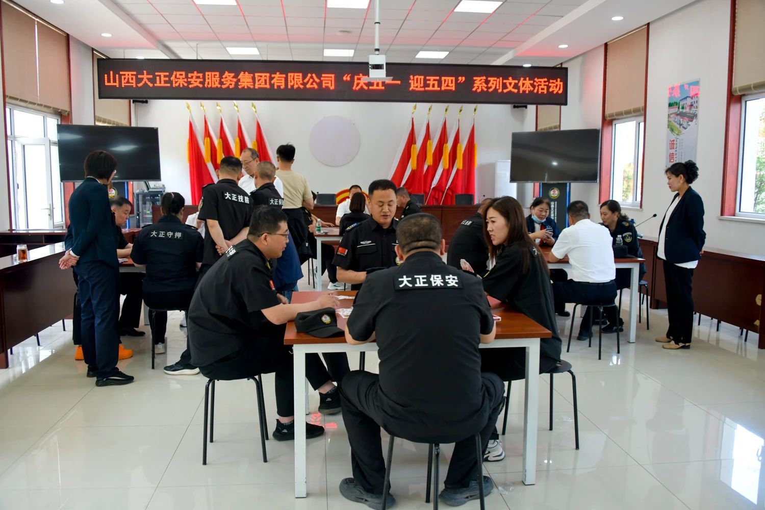 春風浩蕩開勝景,奮楫揚帆啟新程。為提升廣大職工的向心力和凝聚力,豐富職工業(yè)余生活,進一步提高職工的團隊協(xié)作能力,以豐富多彩的文體活動慶祝第134個國際勞動節(jié)、第75個五四青年節(jié)。近日,山西大正保安服務集團有限公司“慶五一、迎五四”系列文體活動激昂開幕,集團公司黨委委員、副總經(jīng)理王明生主持啟動儀式,參加本次啟動儀式的有集團公司領導呂雙明、張瑞東、寇星云、蔡車峰,機關全體職工,各子(分)公司負責人及參賽職工等人員。