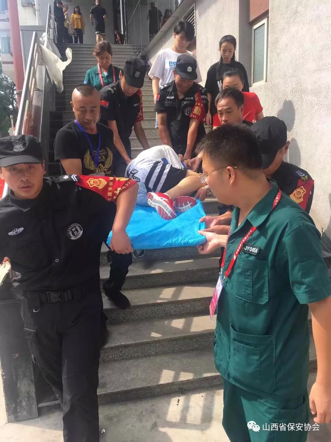 為確保省運會安全順利進行,公司參勤保安員認真按照安保方案要求,頂著驕陽,冒著酷暑,加班加點,連續(xù)作戰(zhàn),由于正值盛夏,天氣持續(xù)高溫,給保安員帶來了嚴峻的考驗,保安員高溫脫水、中暑暈倒的現(xiàn)象頻頻發(fā)生,但同志們發(fā)揚不怕苦、不怕累的精神,堅守在各自崗位上,文明執(zhí)勤、熱情服務(wù)。比賽現(xiàn)場,經(jīng)常出現(xiàn)運動員比賽受傷的情況,執(zhí)勤保安員都會第一時間協(xié)助醫(yī)護人員將傷者抬到醫(yī)務(wù)室進行救治,全力保障省運會各項活動有序進行。