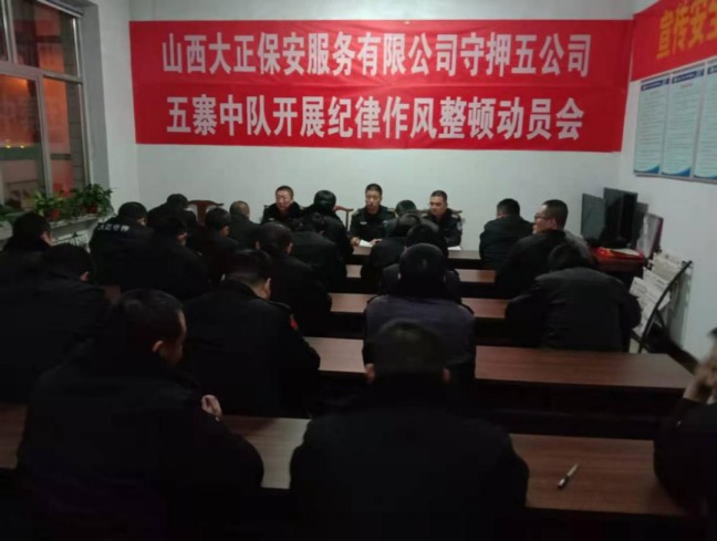為了積極響應(yīng)集團公司“紀律作風集中整頓活動”的安排部署,11月25日,守押五公司在所屬五寨中隊開展紀律作風整頓暨基層中隊自查自糾活動專題會議。會議由守押五公司經(jīng)理王文章主持,副經(jīng)理王玉江及五寨中隊全體隊員參加了會議。
