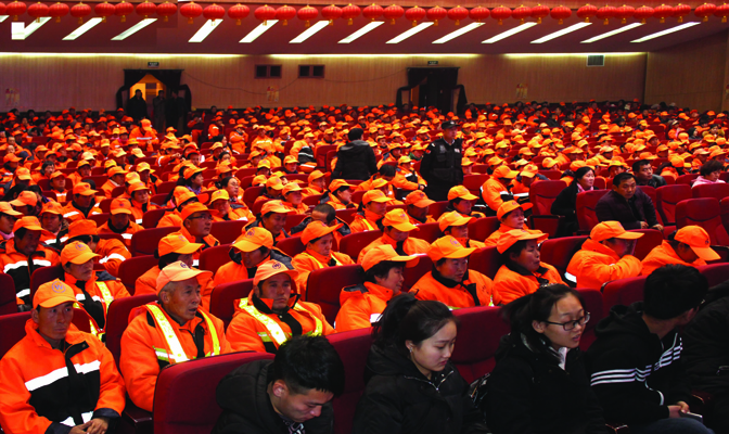 忻州市保安押運護衛(wèi)中心、保安服務公司總經(jīng)理張躍生、黨委書記陳志平,忻州市環(huán)衛(wèi)處處長石建新和現(xiàn)場500余名環(huán)衛(wèi)工人代表共同觀看了演出。