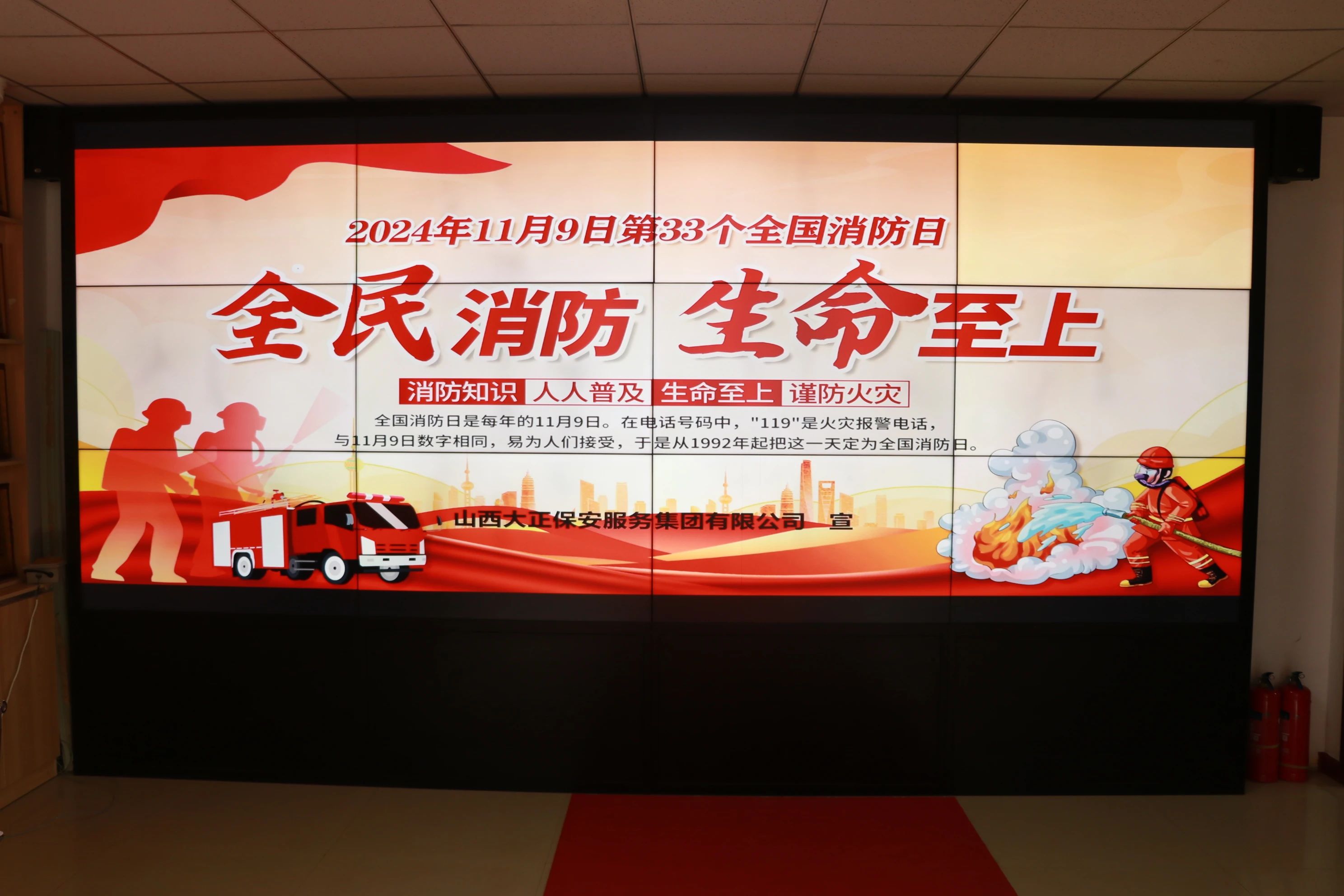 2024年11月9日是第33個(gè)“全國(guó)消防日”,今年的消防安全主題是“全民消防、生命至上”。為深入學(xué)習(xí)貫徹習(xí)近平總書記關(guān)于安全生產(chǎn)和消防安全重要指示批示精神,進(jìn)一步提升職工消防安全意識(shí)及自救互救技能,加強(qiáng)消防安全風(fēng)險(xiǎn)的預(yù)防措施。山西大正保安服務(wù)集團(tuán)有限公司于11月8日組織開(kāi)展以“全民消防 生命至上”為主題的消防安全知識(shí)專題培訓(xùn)。
