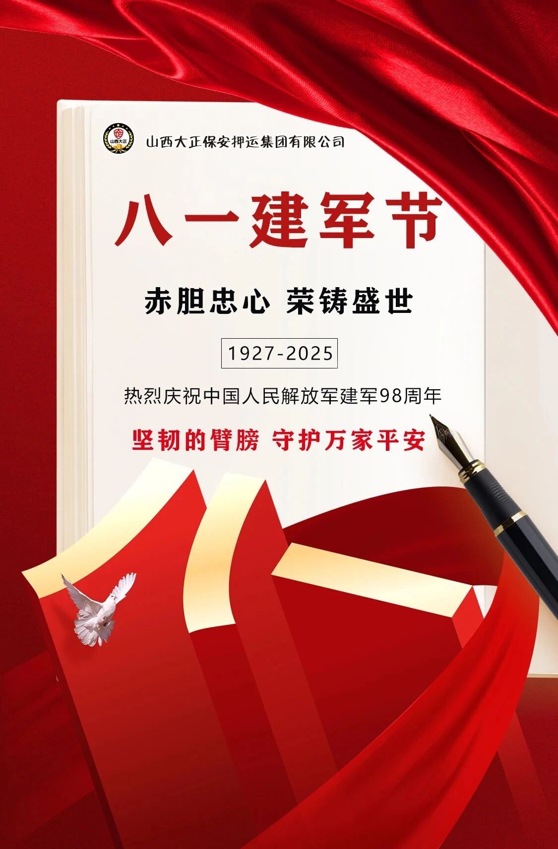 軍旗獵獵,初心如磐。為熱烈慶祝中國人民解放軍建軍98周年,傳承紅色基因,弘揚優(yōu)良傳統(tǒng),進一步增強退役軍人的榮譽感、歸屬感和幸福感。8月1日,山西大正保安押運集團有限公司組織召開迎“八一”建軍節(jié)暨退伍軍人座談會。集團公司黨委委員、副總經理王明生,黨委委員邢春生及領導班子成員,機關、各子公司退役軍人員工代表和軍屬共計40余人齊聚一堂,共憶軍旅生涯,共話職責使命,共謀公司發(fā)展。