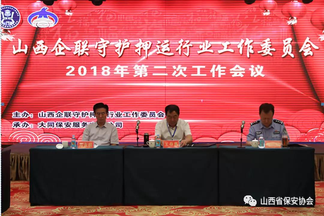 2018年7月13日,山西企聯(lián)守護押運行業(yè)工作委員會2018年度第二次工作會議在大同召開。本次會議由山西企聯(lián)守護押運行業(yè)工作委員會常務副主任委員張躍生同志主持。市國資委和市公安局相關(guān)領(lǐng)導同志參加了會議。會議組織學習了公安部下發(fā)的《保安守護押運公司管理規(guī)定》,并就如何提升新時代武裝守護押運業(yè)服務水平,推動武裝守護押運行業(yè)不斷開創(chuàng)新局面等問題開展了討論。