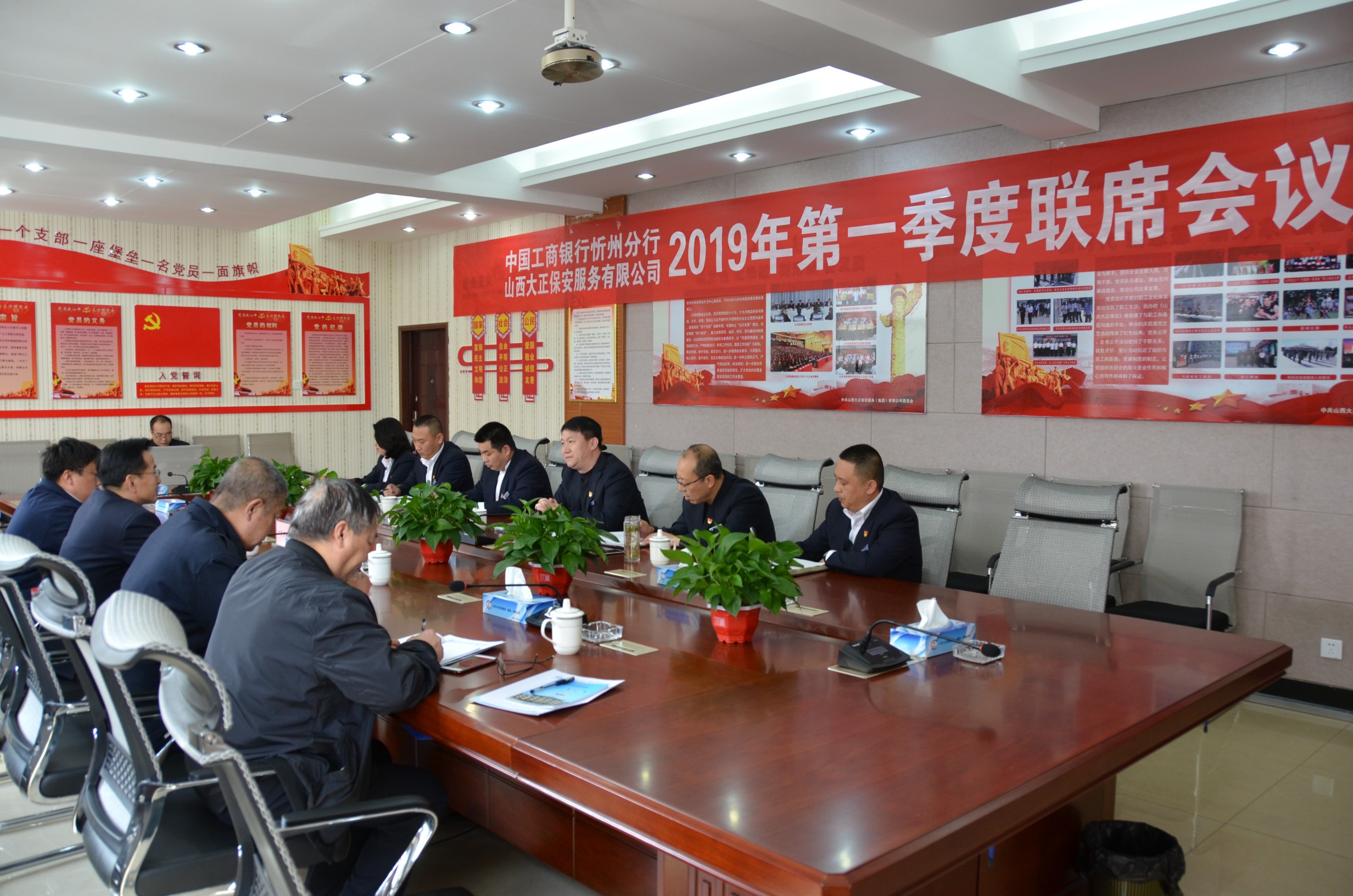 3月29日,公司與工行忻州分行召開2019年第一季度聯(lián)席會議。黨委委員、副總經(jīng)理趙培宏主持會議,工行忻州分行紀(jì)檢書記李榮杰,內(nèi)控安全保衛(wèi)部副經(jīng)理徐軍及公司黨委委員、副總經(jīng)理王明生,董事長助理、守押公司副總經(jīng)理寇星云等公司領(lǐng)導(dǎo)參加會議。