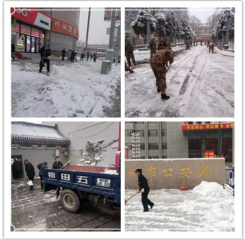在每一處活動(dòng)現(xiàn)場(chǎng),我公司黨員干部率先行動(dòng),各級(jí)員工與自愿加入的鄰近居民和商戶們都熱情高漲,干勁十足,紛紛拿起除雪用具清理路面積雪,用長(zhǎng)竹竿拍打樹干,清除積壓的樹梢的積雪,以防大雪壓斷樹枝阻礙行人通行,有力保障了周邊道路及各界群眾的出行安全,以實(shí)際行動(dòng)體現(xiàn)了大正保安公司高度的社會(huì)責(zé)任感和樂于奉獻(xiàn)的精神風(fēng)貌,進(jìn)一步提升和傳播了創(chuàng)文志愿服務(wù)觀念,也讓各界群眾充分感受到了我市創(chuàng)建文明城市的重要意義,同時(shí)為進(jìn)一步確保我公司安全開展各項(xiàng)業(yè)務(wù)打好了堅(jiān)實(shí)基礎(chǔ)。