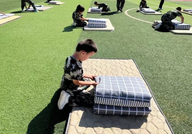 在為期三天的軍訓活動中,四位教官精心組織、細心教導進行了隊列隊形、軍體拳、內務整理等科目訓練,同學們在教官的教導下不僅熟練掌握各項基本動作,同時還磨煉了同學們堅強的意志品質,幫助他們形成了良好的行為習慣。在匯報表演時,同學們整齊劃一的隊形隊列、反映迅速動作嫻熟的颯爽英資贏得了校領導和老師、家長代表的熱烈掌聲。