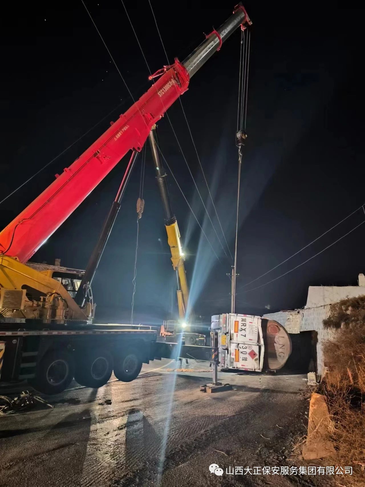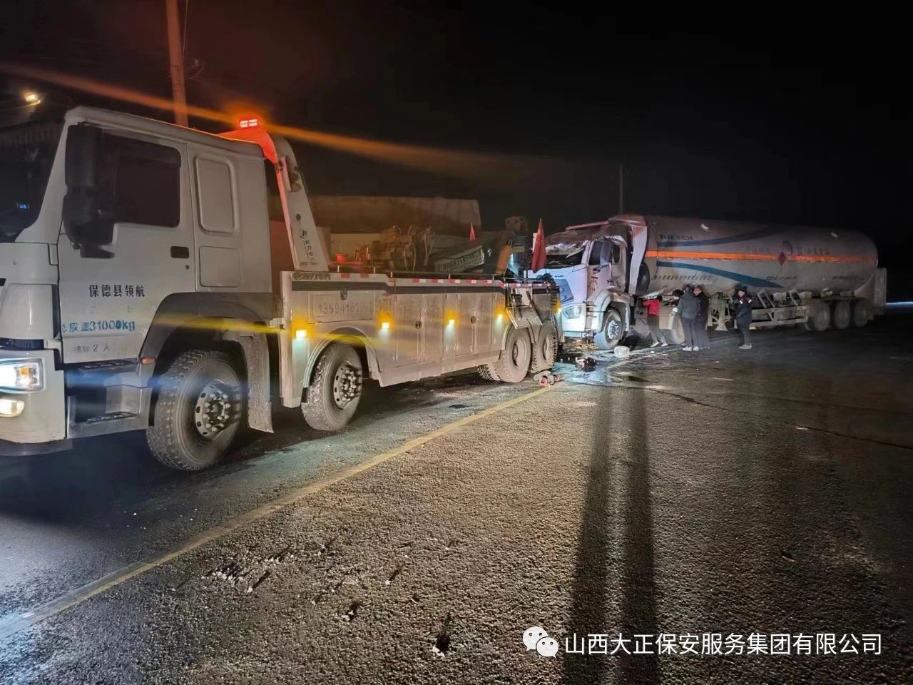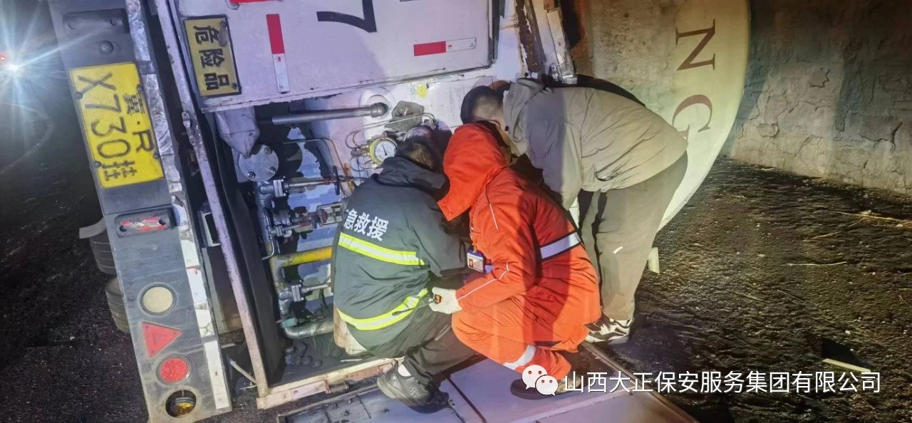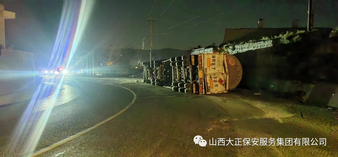 2023年11月23日晚8時(shí),山西大正保安集團(tuán)公司保德縣守押中隊(duì)?wèi)?yīng)急救援大隊(duì)接到應(yīng)急局出勤指令,棗林坡有滿(mǎn)載液化氣罐車(chē)發(fā)生側(cè)翻,需要派出應(yīng)急人員控制現(xiàn)場(chǎng),并協(xié)助處理側(cè)翻事故。應(yīng)急救援大隊(duì)接到命令后,派出應(yīng)急車(chē)輛兩部及應(yīng)急人員5人趕赴現(xiàn)場(chǎng),協(xié)助交警對(duì)現(xiàn)場(chǎng)路段進(jìn)行管控,保證周?chē)?chē)輛人員安全。