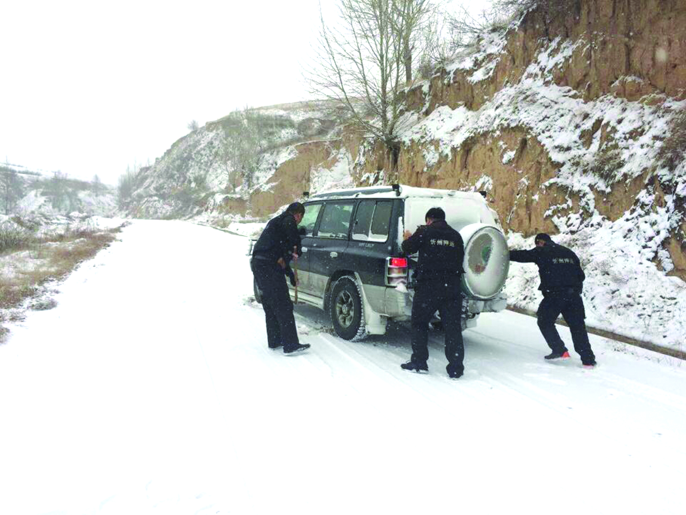 吃過早飯后,整理好裝備準(zhǔn)備出車,隊長點名開會,會上強調(diào)雪天注意行車安全,制定了應(yīng)急預(yù)案,并隨車配發(fā)了路上用的鏟雪用具,出現(xiàn)情況隨時逐級匯報。