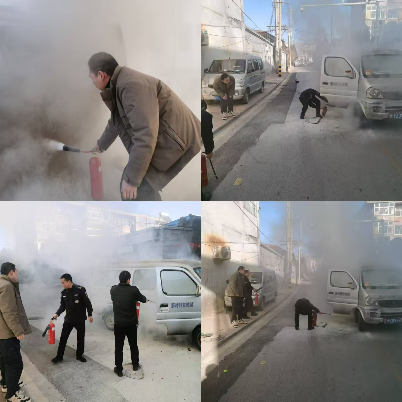 牛文亮迅速指揮團(tuán)隊(duì)成員分工協(xié)作,一人負(fù)責(zé)疏散周圍群眾,確保人員安全;其余三人則利用銀行配備的消防器材,勇敢地沖向火場(chǎng)。在牛文亮的帶領(lǐng)下,保安們緊張有序地開展滅火行動(dòng),他們毫不畏懼濃煙和高溫,輪流奮力噴射滅火器,不顧危險(xiǎn),對(duì)準(zhǔn)火源進(jìn)行有效撲滅,成功遏制了火勢(shì)蔓延。
